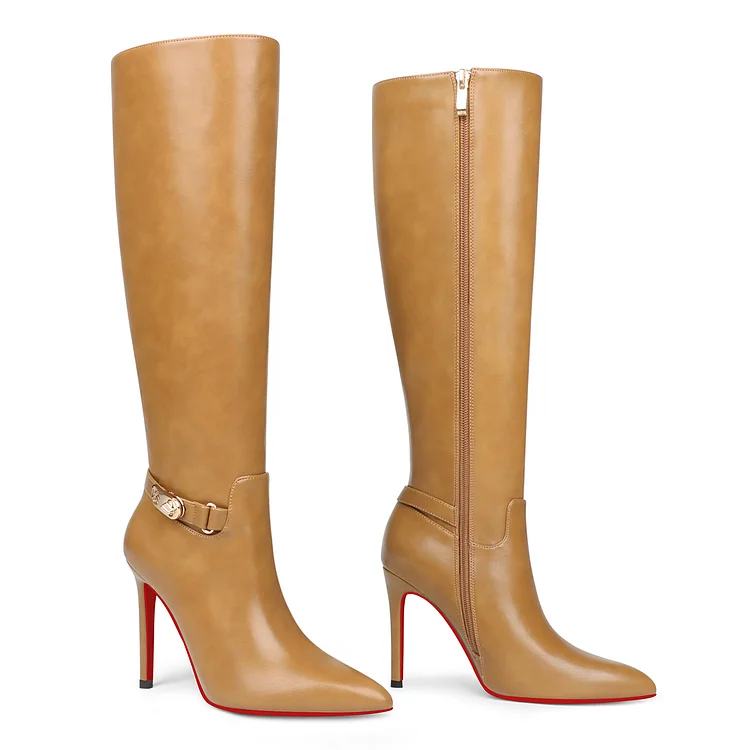 100mm Fashion Zipper Red Bottoms High Heels Metal Buckle Knee Boots