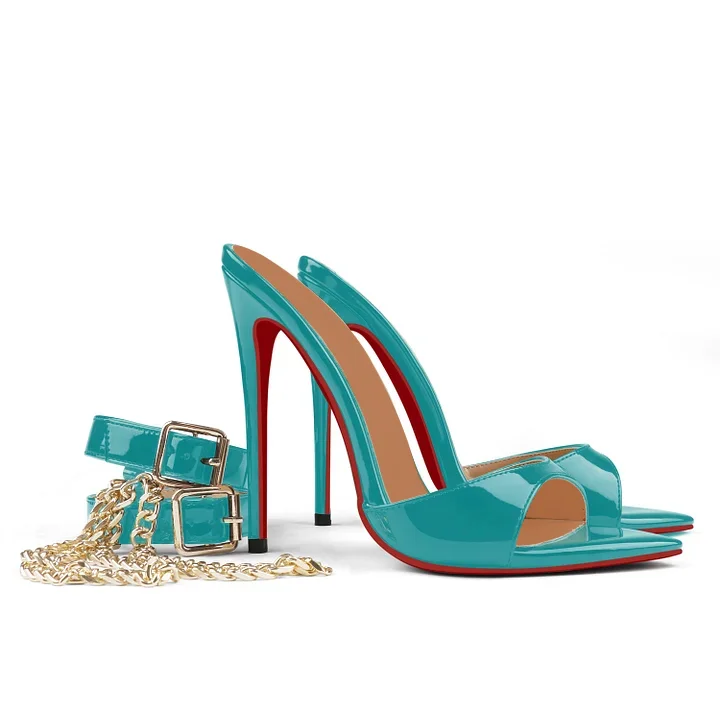 120mm Women's Sandals Removable Chain Ankle Strap Pointed Toe Mules Heels