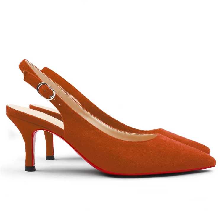 60mm Women's Pointed Toe Slingback Kitten Heels Red Bottom Suede Pumps
