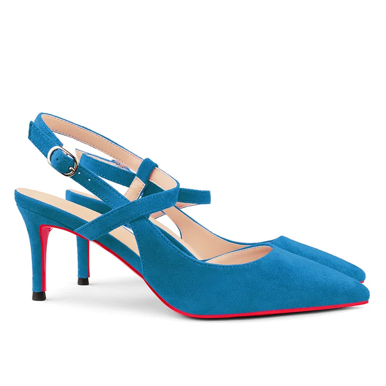 65mm Women Pumps Ankle Strap Jenlove Stiletto Slingback Suede Kitten Pointed Toe Dress Red Bottoms Heels