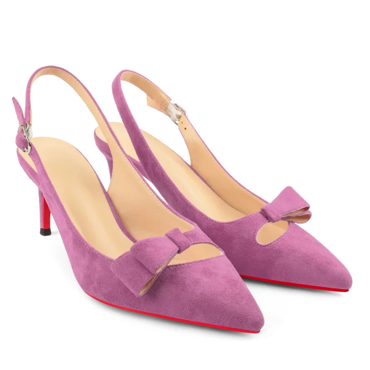 65mm Women's Pointed Toe With Bows Kitten Stillettos Slingback Red Bottoms Prom Suede Sandals