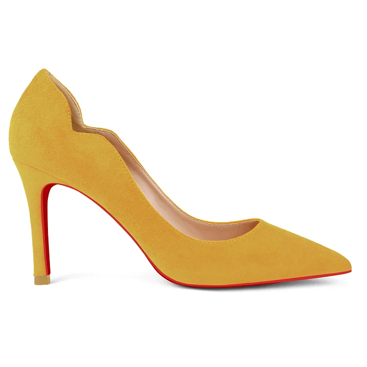 90mm Middle Heels Pointy Toe Red Bottom V-Cut Fashion Pumps Suede