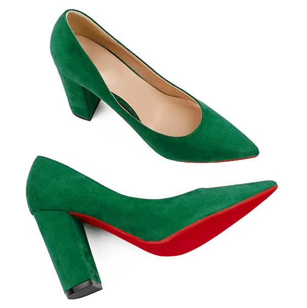90mm Women Chunky Heels Middle Block Heel Red Bottoms Pumps Suede