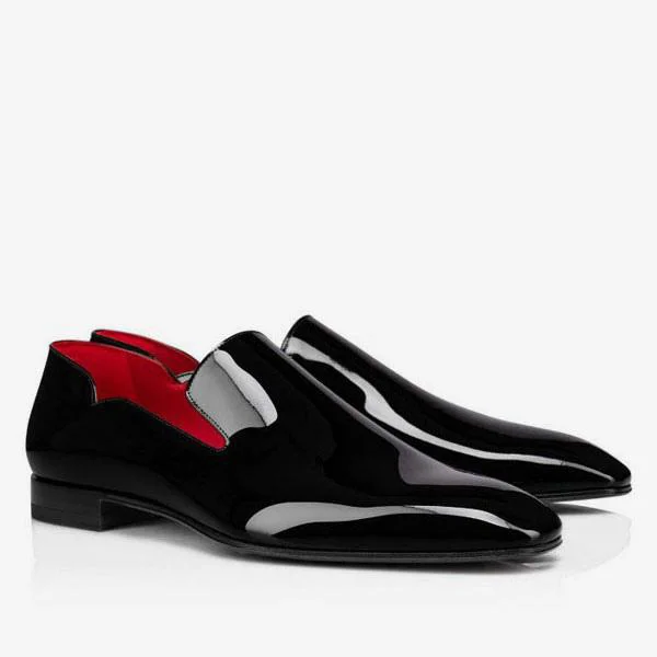 Gentleman's Cut Out Slip-On Prom Party Wedding Red Bottom Shoes in Patent Leather V-shaped Notches