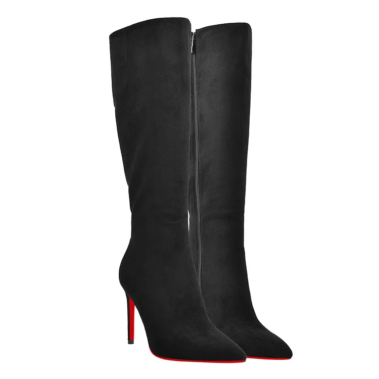 100mm/3.94 Inch Fashion Knee High Boots Platform Heel Boots Red Bottom Stilettos Booties