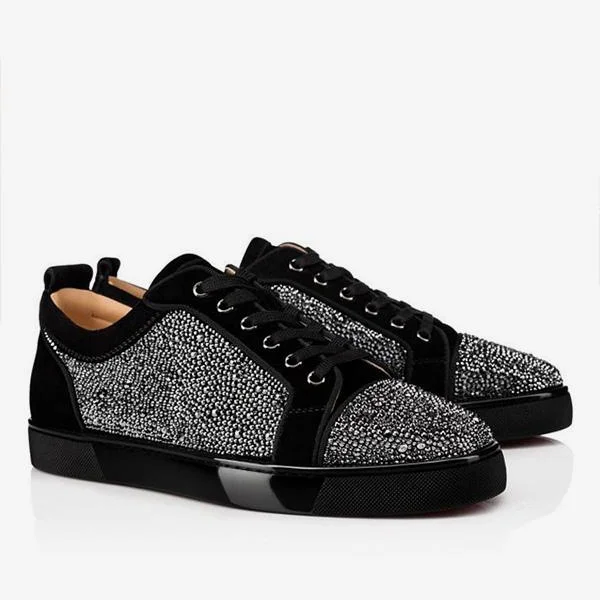Gentleman's Prom Party Sneakers Shoes Red Bottom Round Toe Rhinestones Shoes